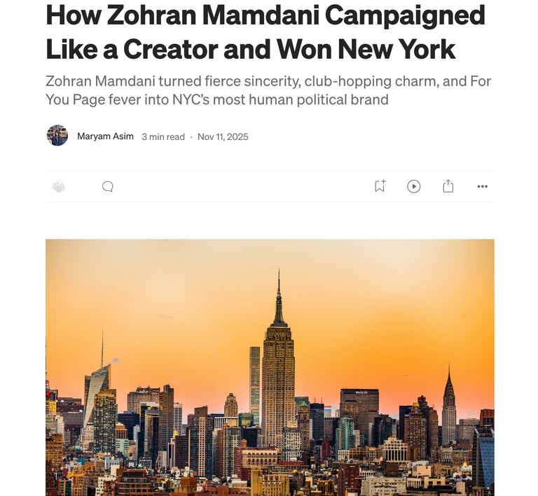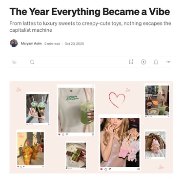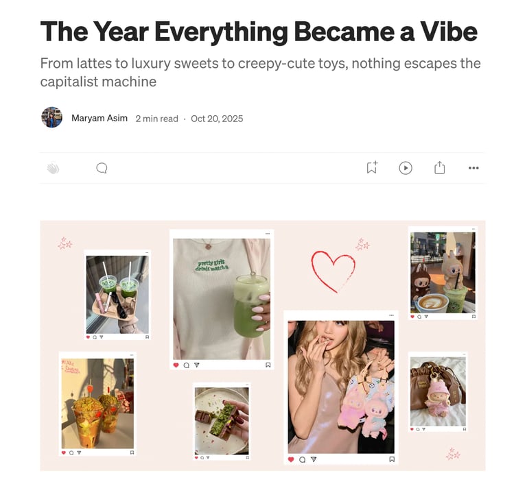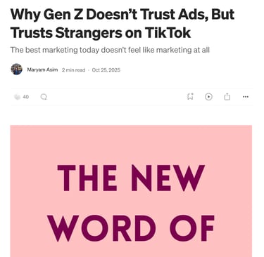 I write on Medium, exploring the intersection of marketing, culture, and digital behavior through thoughtful analysis and storytelling. My work examines how brands connect with audiences today, covering topics such as Gen Z engagement, creator-led campaigns, and emerging cultural trends shaping modern marketing.